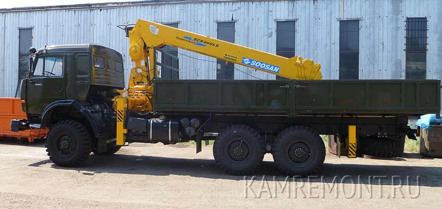КамАЗ 43118 бортовой вездеход г/п 10 т с кап. ремонта, новый манипулятор SOOSAN SCS866LS (Корея) г/п 7 т, стрела 19 м.